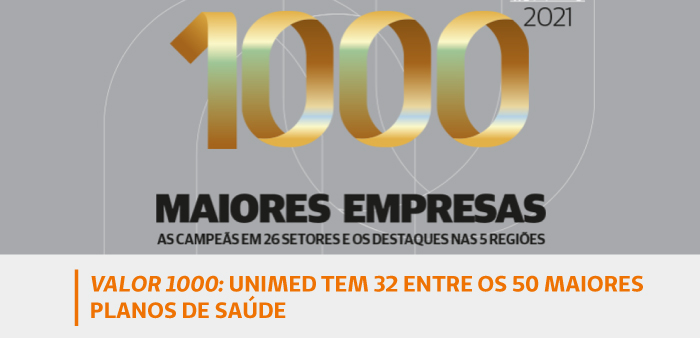 O jornal Valor Econômico divulgou nesta quinta-feira, 30 de setembro, no anuário Valor 1000, o ranking com os 50 maiores planos de saúde do país em 2021. O levantamento tem a presença de 32 Unimeds, representando 64% do total. A marca também está entre as top 20 seguradoras de Vida e Previdência, em ranking que inclui as companhias ligadas a bancos.