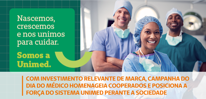 A Unimed do Brasil promove em outubro uma campanha especial em homenagem ao Dia do Médico, celebrado no dia 18 deste mês. A ação prevê grande impacto de divulgação, com estratégia e ações em diversas frentes, e tem como destaque um plano de mídia nacional.