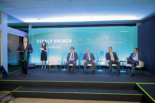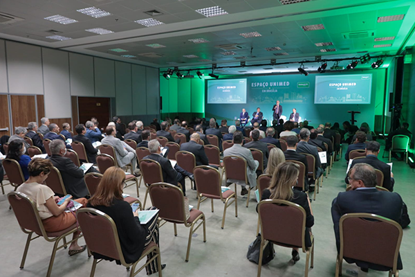 | Fórum Unimed, na tarde de 5 de abril, reuniu dirigentes e representantes de entidades do setor de saúde, do cooperativismo e de médicos |