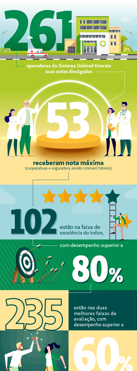 Por sua vez, a Unimed Odonto está entre as quatro melhores operadoras odontológicas de grande porte do país. A empresa do Sistema Unimed conquistou a faixa de excelência do índice, com desempenho superior a 85% e nota máxima nas dimensões Sustentabilidade no Mercado e Qualidade em Atenção à Saúde.