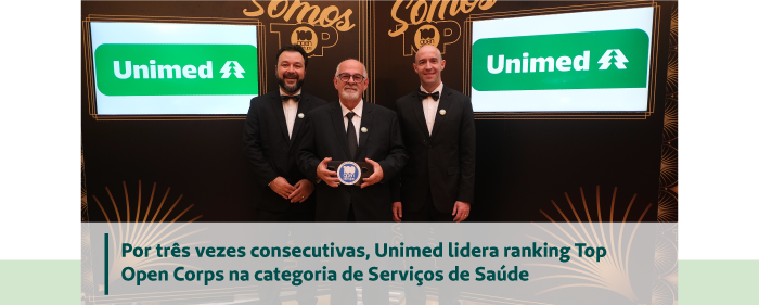 Por mais um ano consecutivo, a marca Unimed conquistou o primeiro lugar do Top Open Corps, na categoria Serviços de Saúde. Concedida pela 100 Open Startups, a premiação reconhece corporações líderes em open innovation com startups. No ranking geral, a Unimed ocupa, agora, a 5ª posição. Ano passado, a marca estava em 8º lugar.